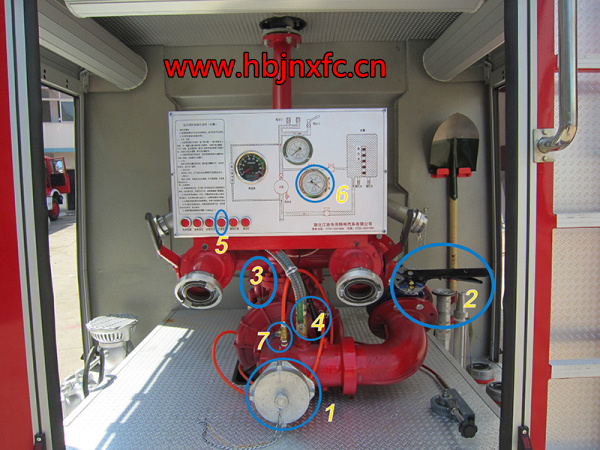 消防车注水:可通过消防栓直接给消防车注水,这种方式是通过消防水带将消防栓与消防车罐体注水口(注水口在罐体尾部,左右各1个)连接,打开消防栓开关即可完成注水。消防车抽水: 第一步:将吸水胶管与消防泵进水口(图1)连接,如图所示,胶管另一端装上滤水器(以免工作时吸进杂质、石块,造成消防泵严重损坏),..